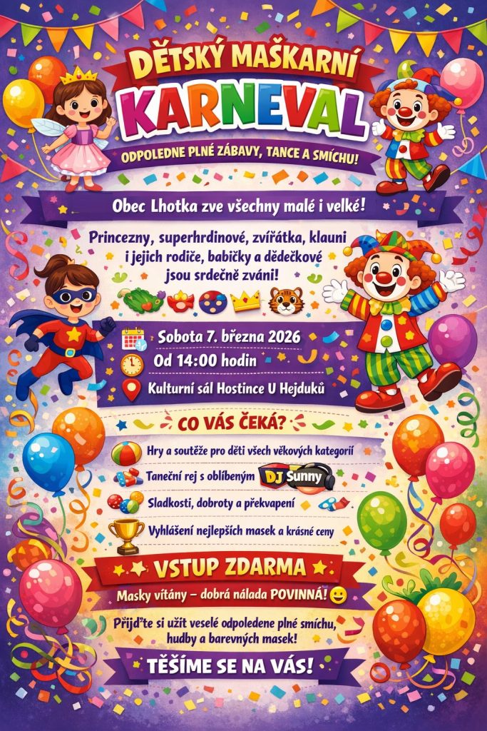 Princezny, superhrdinové, zvířátka, klauni i jejich rodiče, babičky a dědečkové jsou srdečně zváni!
